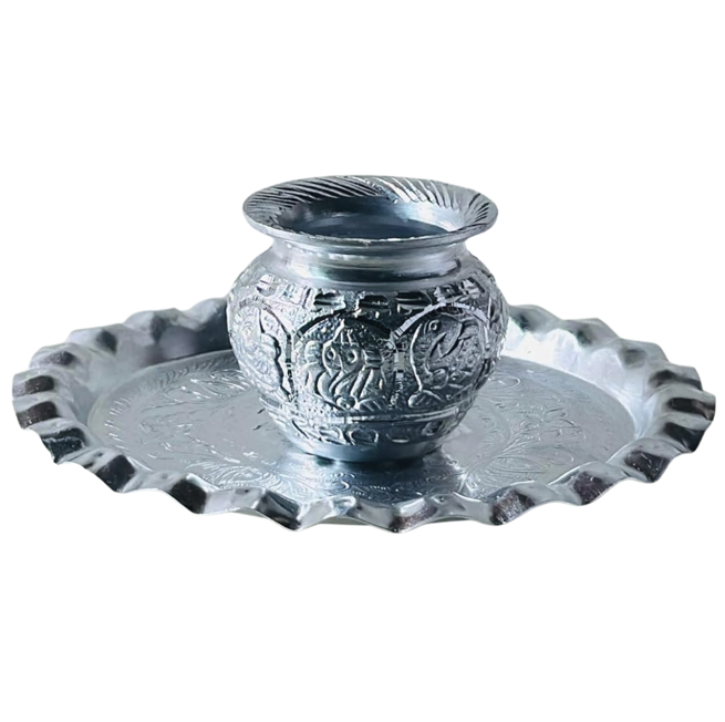 Brass Mini Prasad Thali Set 4 Items- Thali Katori Glass Paata/Aasan