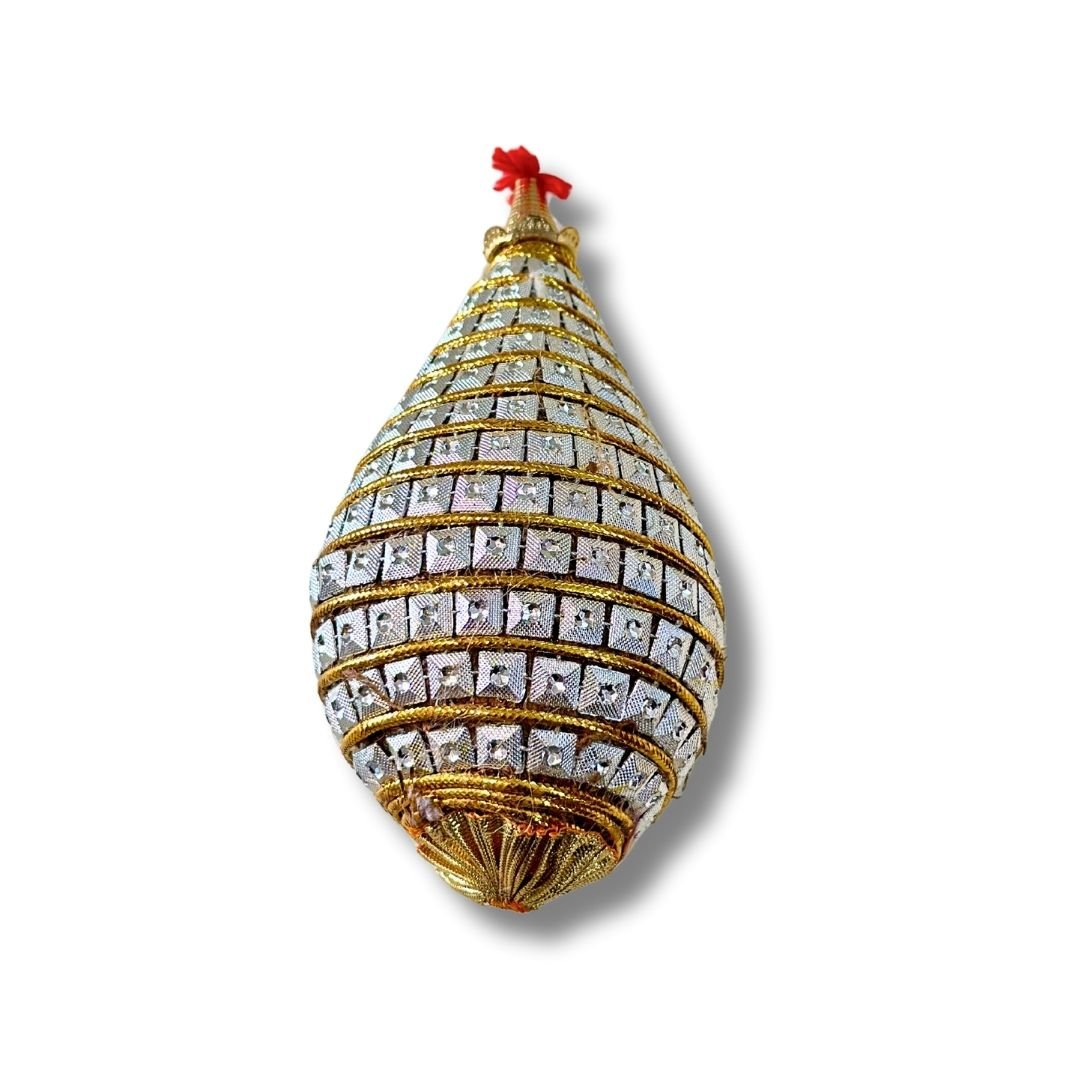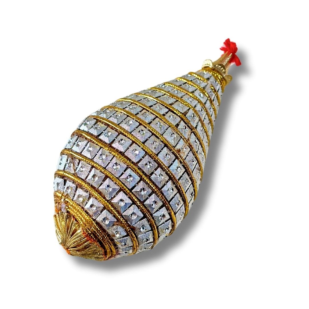 Description: This Decorated Coconut Nariyal Shreefal Shrifal gola for kalash, is used for Wedding, engagement Baraat swagat, roka, haldi, mehendi ceremony, maharashtrian, punjabi, gujarati, marwadi, Jain, Tamil, Bengali Suhagil for married women ladies girls after marriage gift, Mata ki Chowki, Krishna Janam, Ganpati, Diwali Pooja, karwa Chauth. It can also be used for House warming party, new house, new office, new shop.