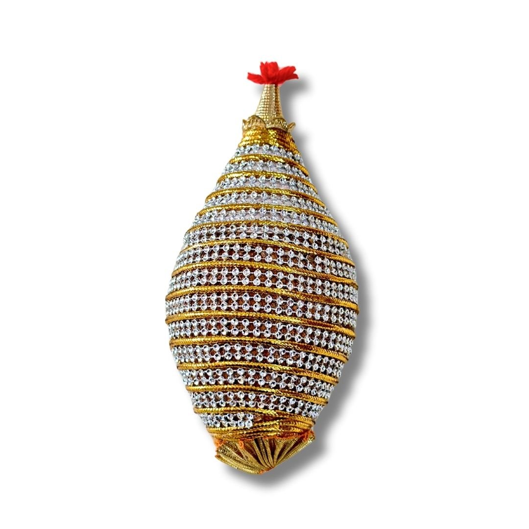 Description: This Decorated Coconut Nariyal Shreefal Shrifal gola for kalash, is used for Wedding, engagement Baraat swagat, roka, haldi, mehendi ceremony, maharashtrian, punjabi, gujarati, marwadi, Jain, Tamil, Bengali Suhagil for married women ladies girls after marriage gift, Mata ki Chowki, Krishna Janam, Ganpati, Diwali Pooja, karwa Chauth. It can also be used for House warming party, new house, new office, new shop.