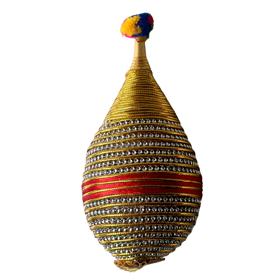 Description: This Decorated Coconut Nariyal Shreefal Shrifal gola for kalash, is used for Wedding, engagement Baraat swagat, roka, haldi, mehendi ceremony, maharashtrian, punjabi, gujarati, marwadi, Jain, Tamil, Bengali Suhagil for married women ladies girls after marriage gift, Mata ki Chowki, Krishna Janam, Ganpati, Diwali Pooja, karwa Chauth. It can also be used for House warming party, new house, new office, new shop.
