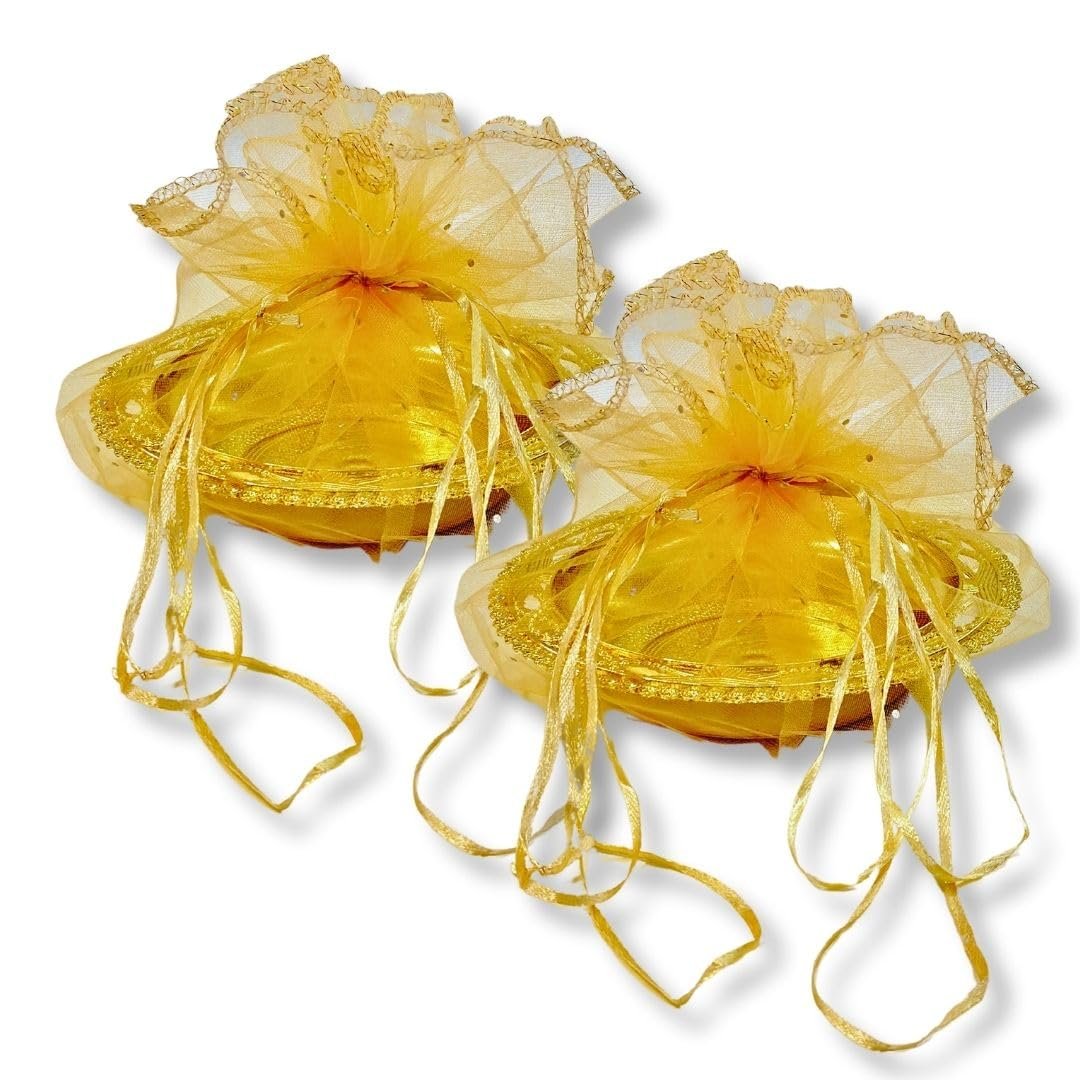 Golden bowl with Net Dry fruit Gift Basket (Pack of 2)