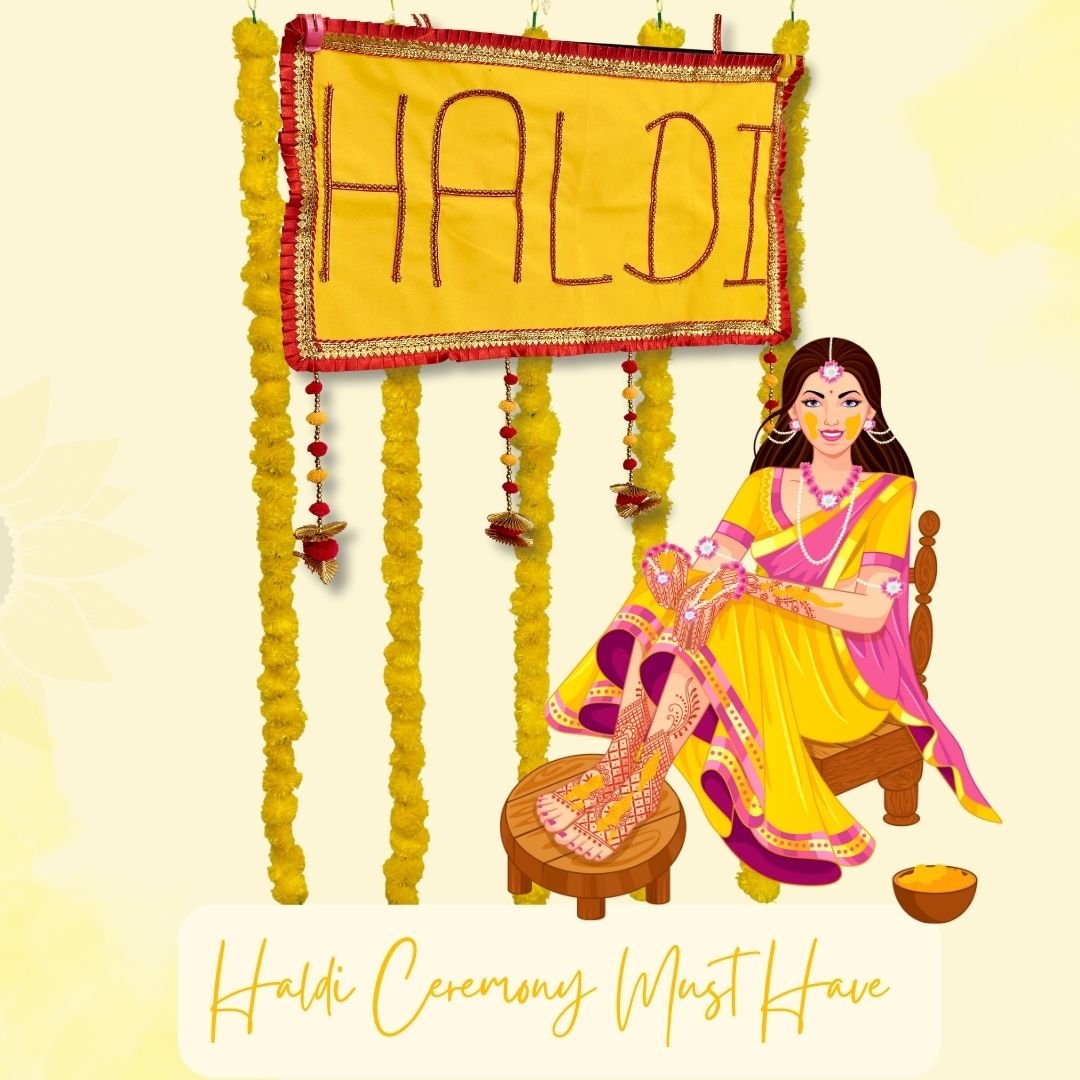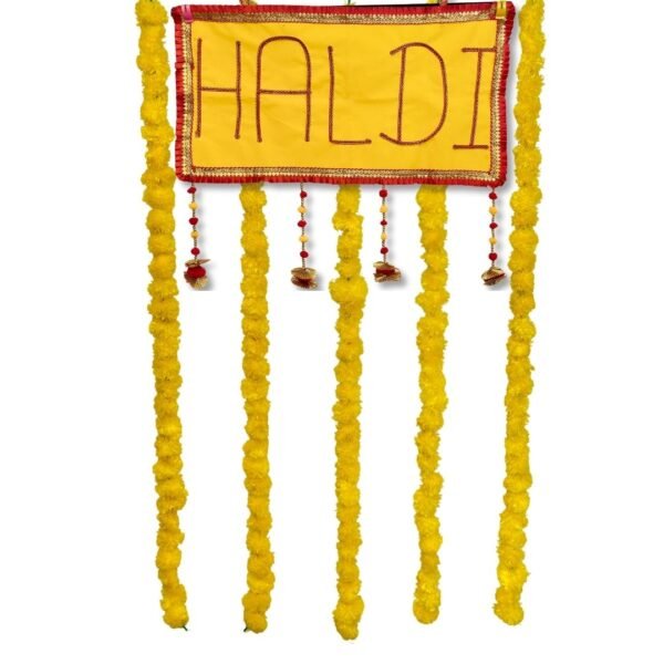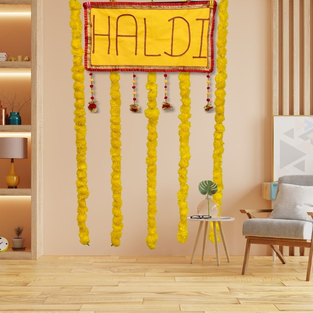 - CONTENTS: 1 Haldi Banner + 5 Genda Phool Streamers