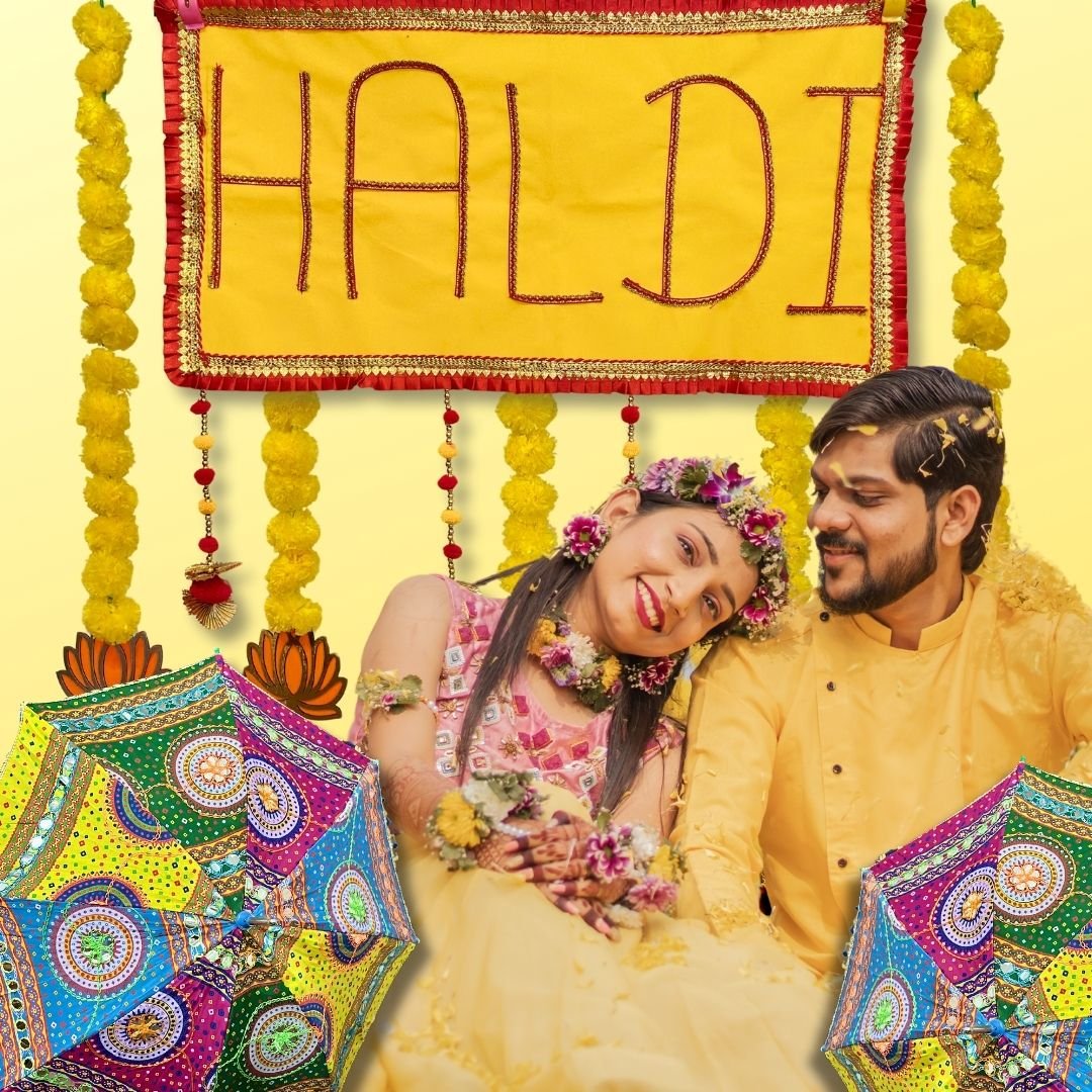 - CONTENTS: 1 Haldi Banner + Lotus Marigold Strings (5) + 2 Rajasthani Umbrellas