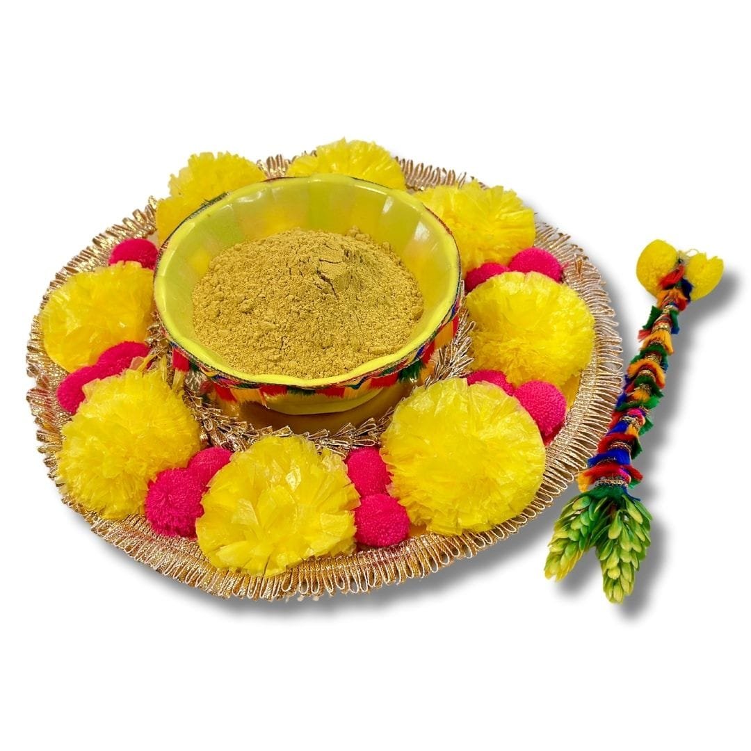 | What is in the box? | ‎CONTENTS: Decorated Haldi Thali (1) with stick (1) & Free Haldi Mix(100 gm) |