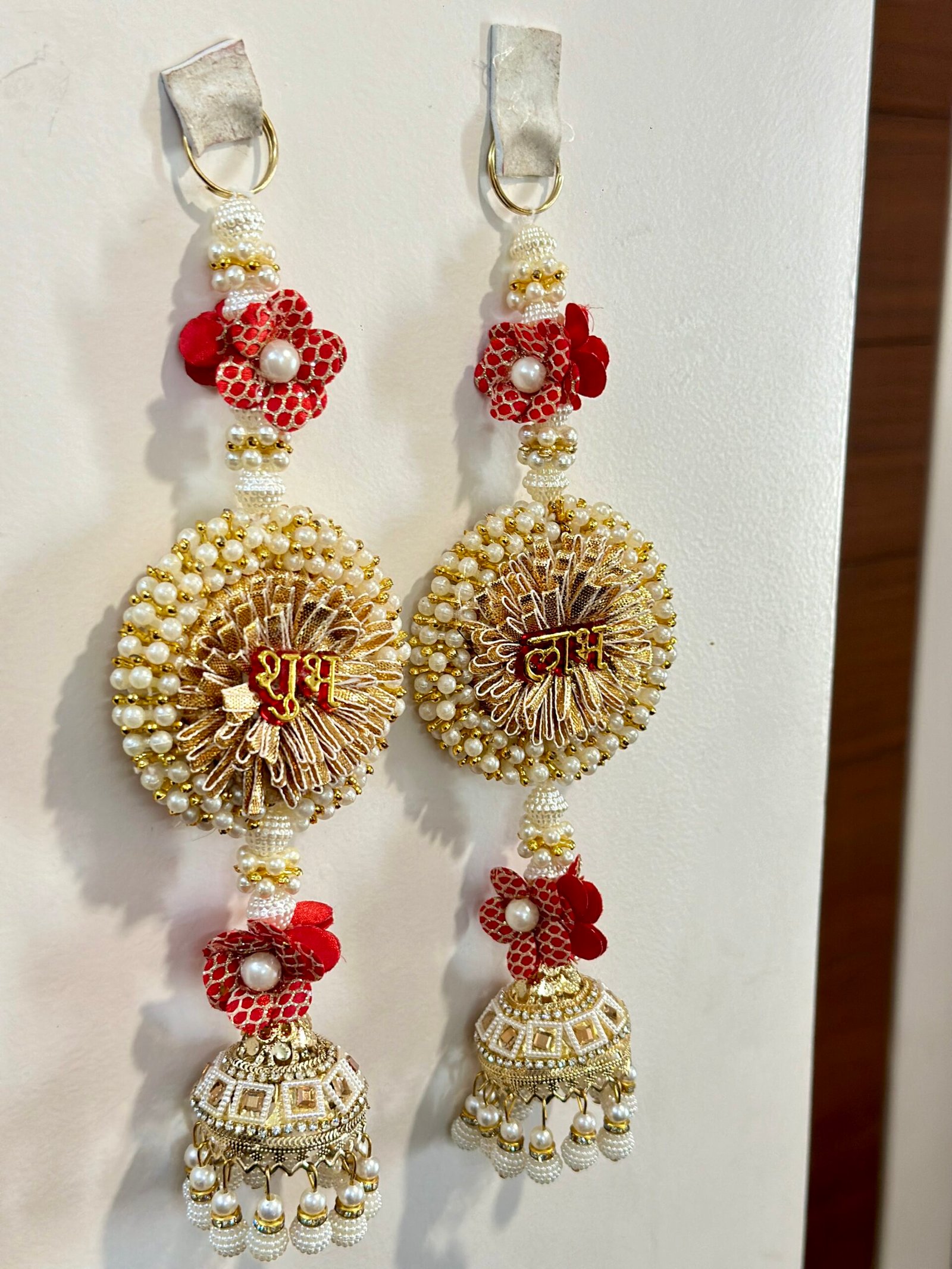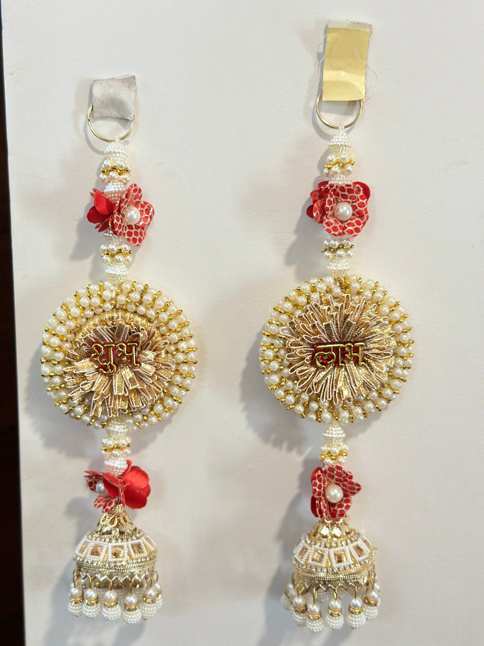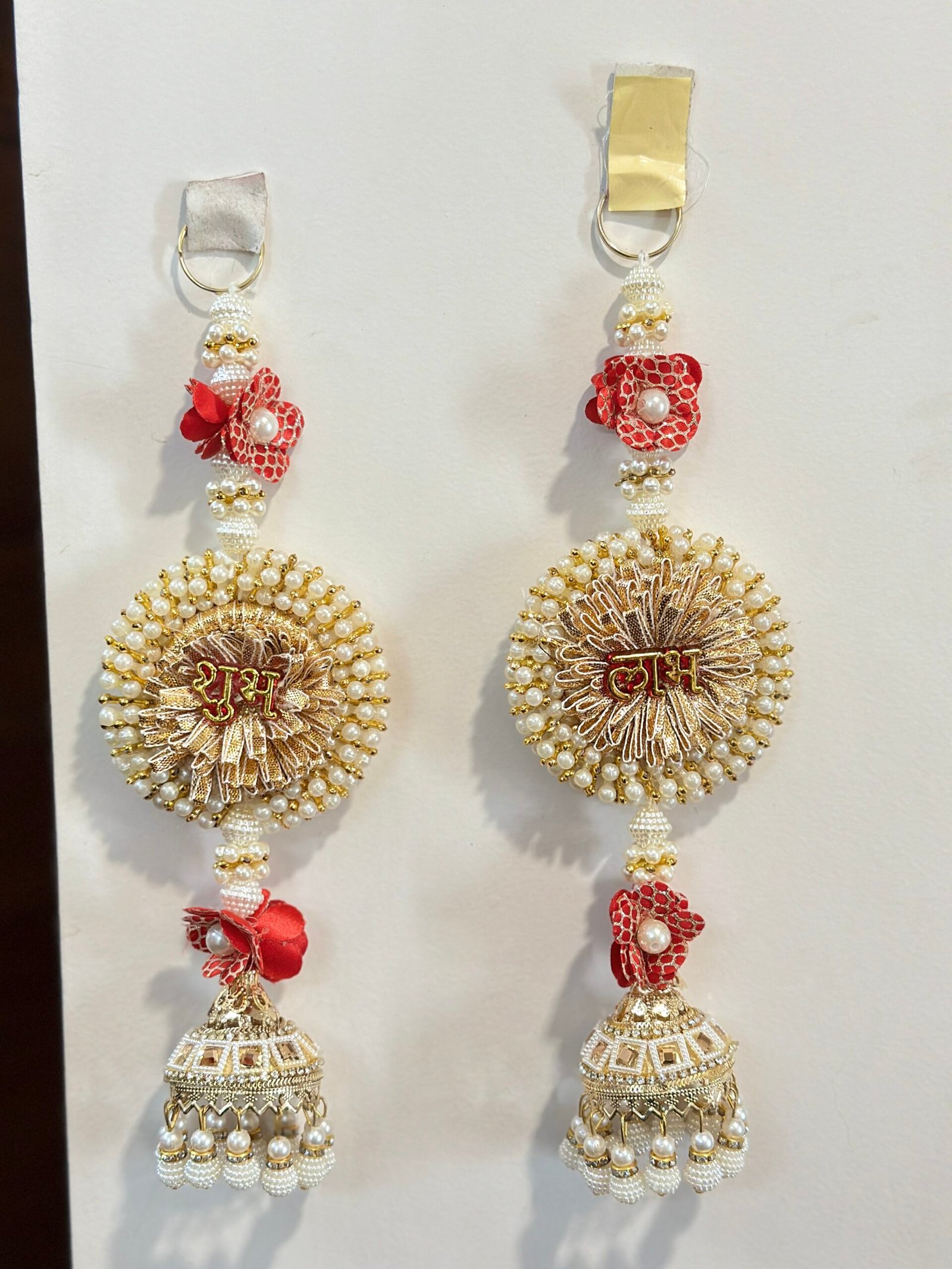- CONTENTS: Pair of Shubh Labh Hangings for Door Entrance (Pink and White)