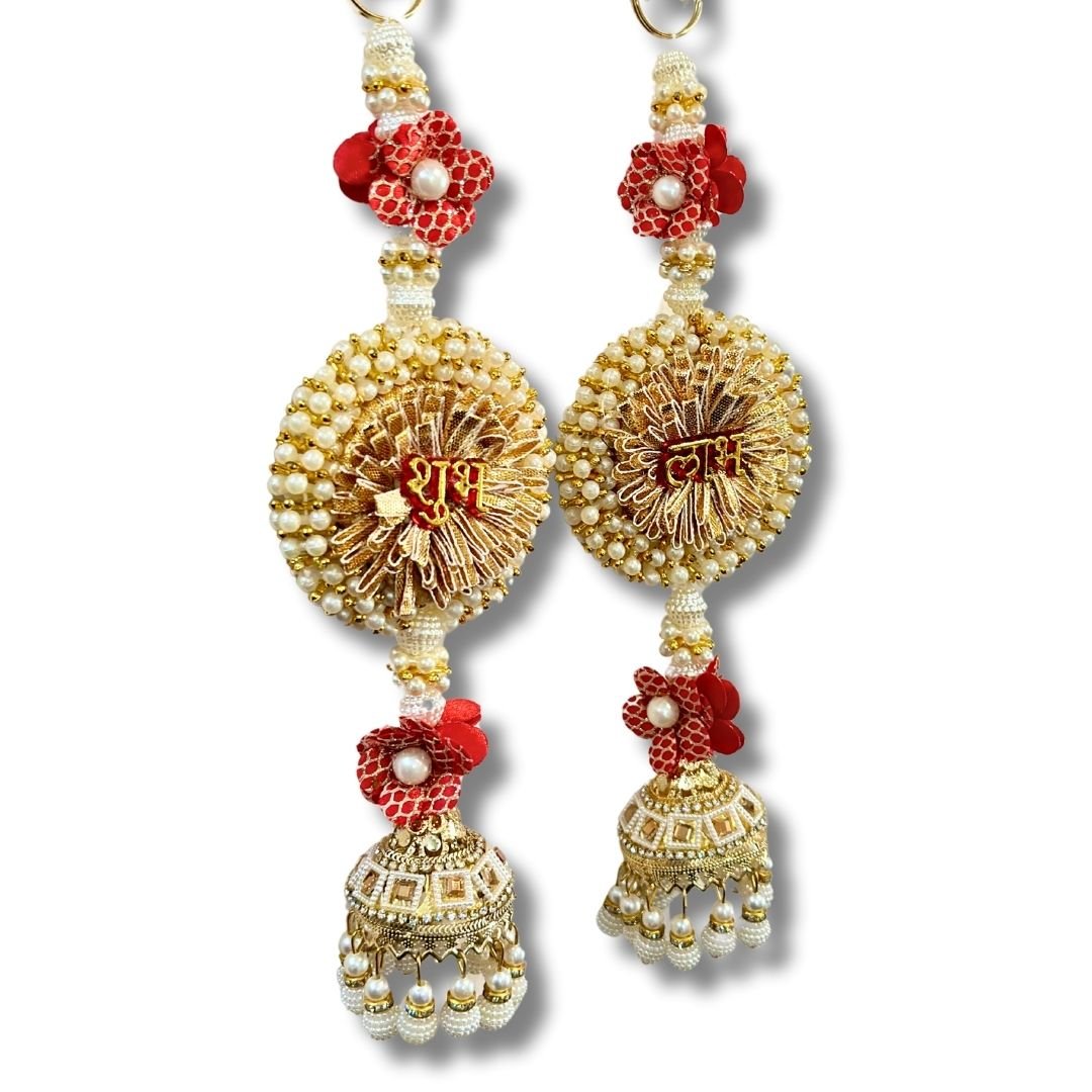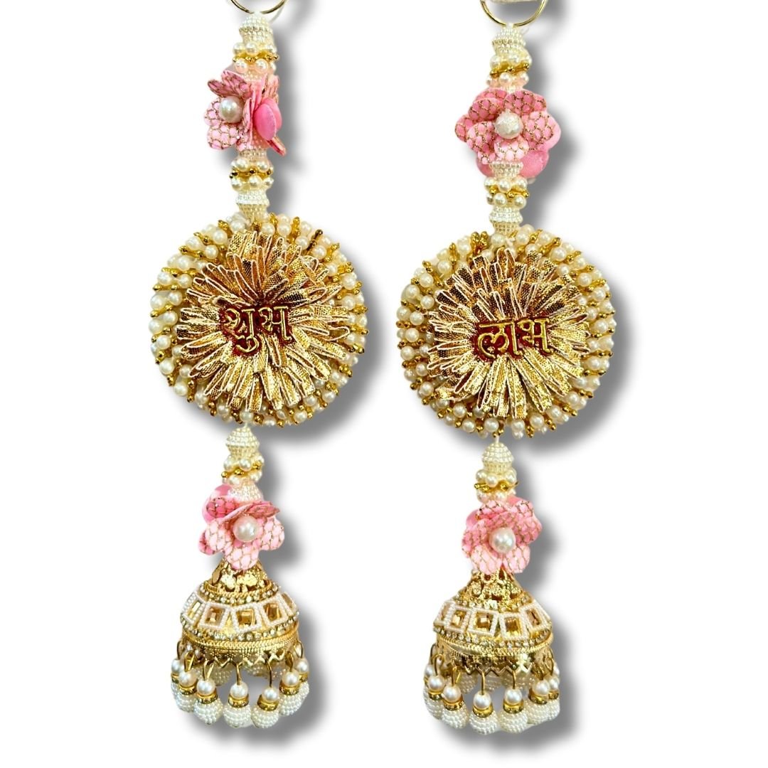 - CONTENTS: Pair of Shubh Labh Hangings for Door Entrance (Pink and White)